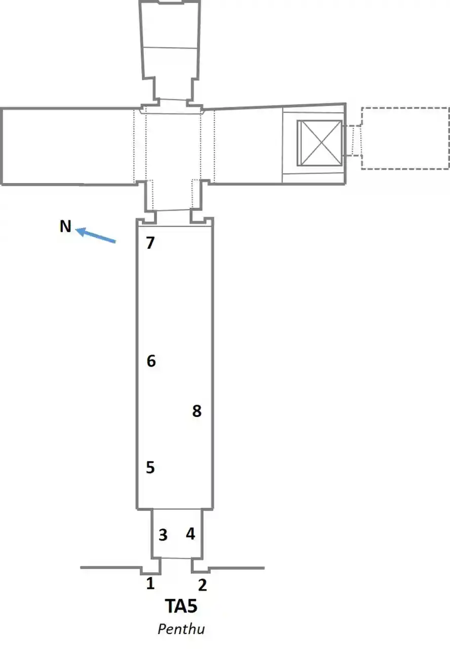 Amarna Tomb 5 is an ancient sepulchre in Amarna, Upper Egypt. It was built for the courtier Pentu, and is one of the six Northern tombs at Amarna. The burial is located to the south of the tomb of Meryra. It is very similar to the tomb of Ahmes. The sepulchre is T-shaped and its inner chamber would have served as the burial chamber. Read more on Wikipedia