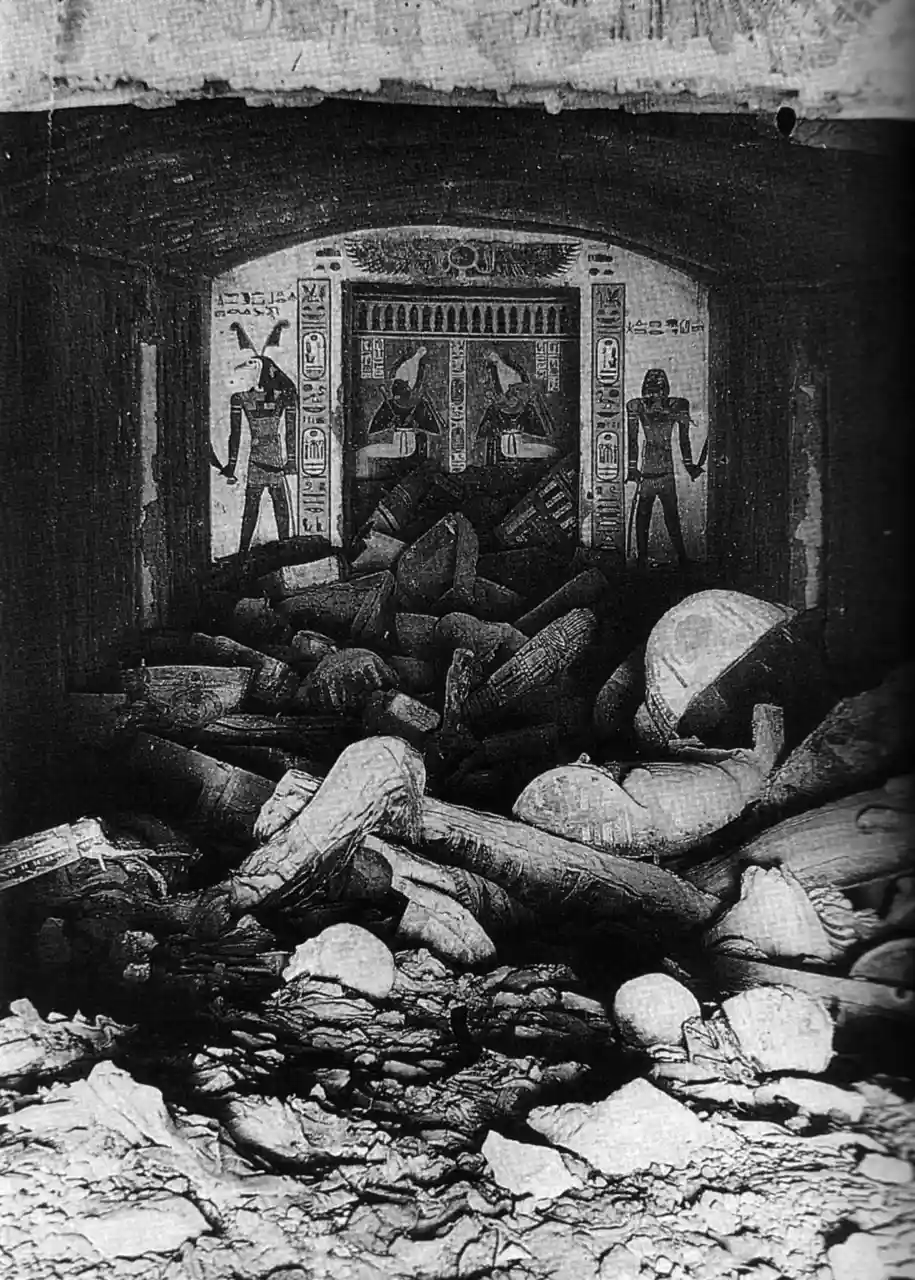 QV44 is one of several tombs located in the Valley of the Queens intended for the use of Ramesses III's sons. The painted reliefs decorating Khaemwaset E's tomb illustrate his ritual and symbolic journey in the Afterlife as he meets the main gods of that region as well as the genies who guard the gates of the kingdom of Osiris. Read more on Wikipedia