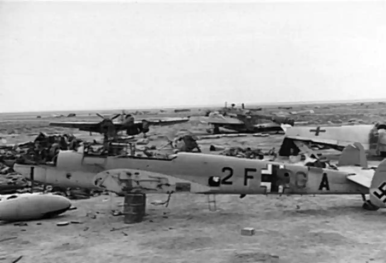 RAF Gambut (or RAF Kambut) is a complex of six abandoned military airfields in Libya, located about north-northeast of the village of Kambut, and east-south-east of Tobruk. During World War II, the complex was an important facility, used by the Royal Air Force and many RAF squadrons were temporarily based there. Read more on Wikipedia