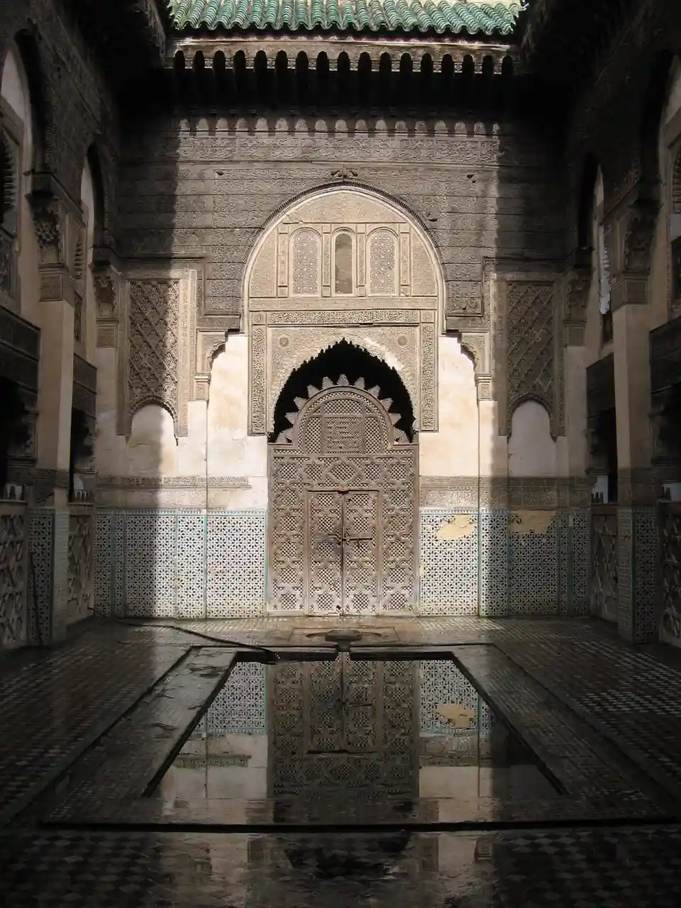 Sahrij Madrasa or Madrasa al-Sahrij (sometimes also Sihrij Madrasa) () is a madrasa in Fez, Morocco. The madrasa is located inside Fes el Bali, the old medina quarter of the city. The madrasa dates back to the 14th century during the golden age of Fez under Marinid rule. The madrasa is located near Al Andalus Mosque and is also connected to another, smaller, madrasa built at the same time, the Sba'iyyin Madrasa. Read more on Wikipedia