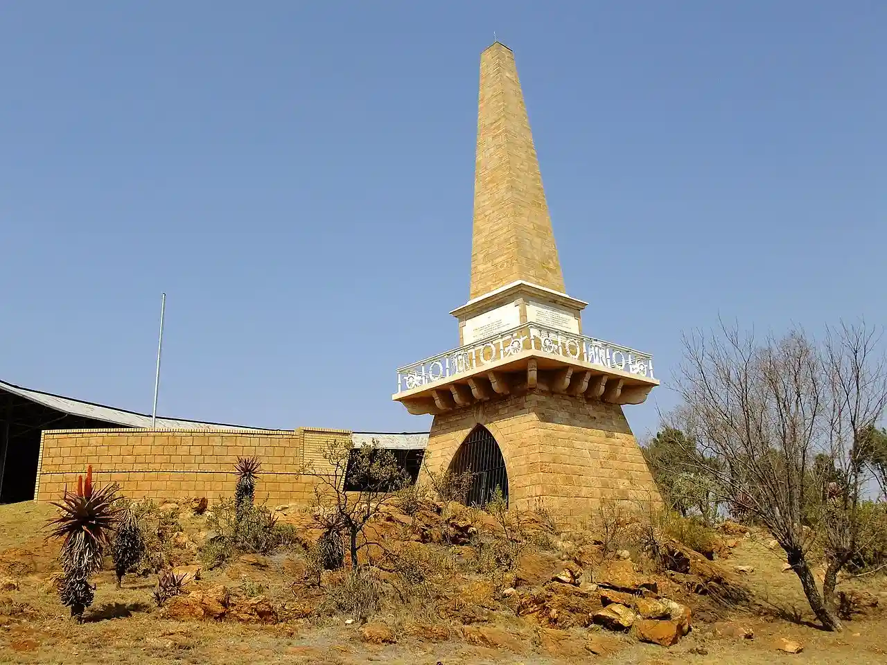 The Paardekraal Monument is situated in Krugersdorp, South Africa. The monument commemorates the original site of vow made by Transvaal Boers on 13 December 1880, prior to the armed rebellion known as First Boer War, when they vowed to regain their independence from the British Empire. This earlier monument was a cairn made of thousands of stones representing the gathered burgers' vow. This official monument enclosed the original stone cairn and was built in 1890 by the South African Republic (ZAR) to commemorate their independence from Great Britain. Read more on Wikipedia