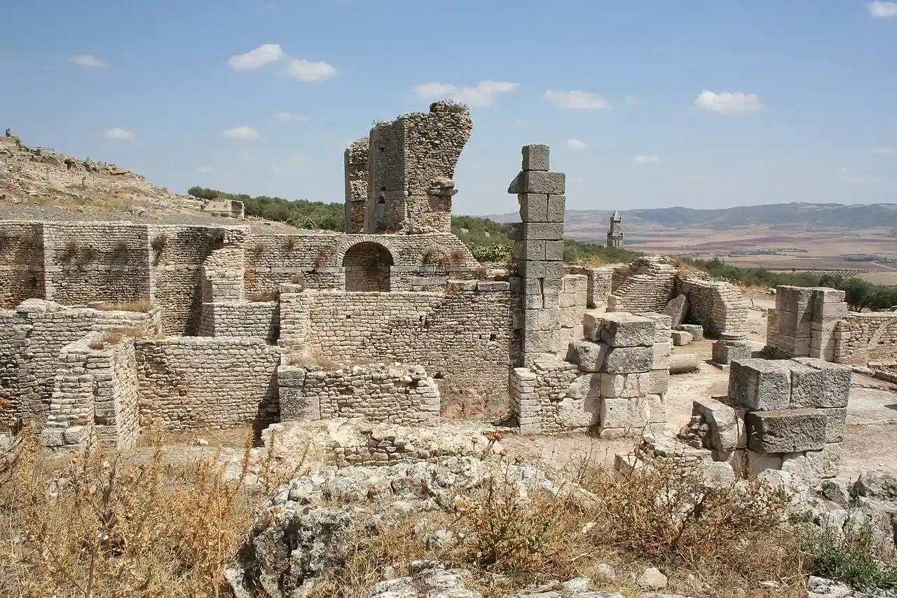 The Aïn Doura Baths are a series of Roman-era ruins located in Dougga, Tunisia. The site contains ruins from a Roman bath dating to the 4th century, and is considered an important archaeological heritage site by the National Heritage Institute of Tunisia. Read more on Wikipedia