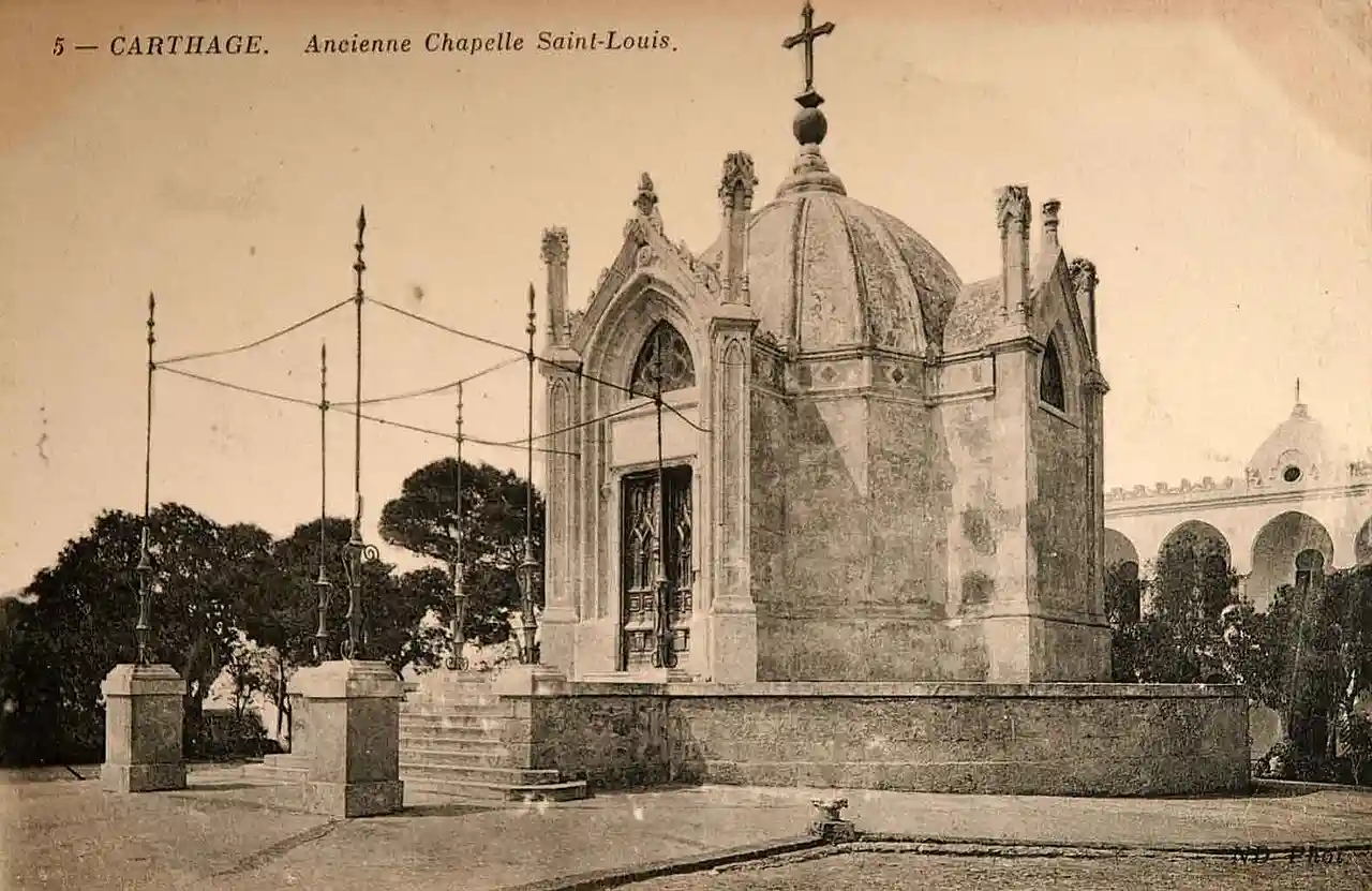 The Chapelle Saint-Louis de Carthage was a Roman Catholic church located in Carthage, Tunisia. It was built between 1840 and 1841 on land donated by the Bey of Tunis to the King of France in 1830. The chapel was located atop Byrsa Hill, at the heart of the Archaeological Site of Carthage, until it was destroyed in 1950. Read more on Wikipedia