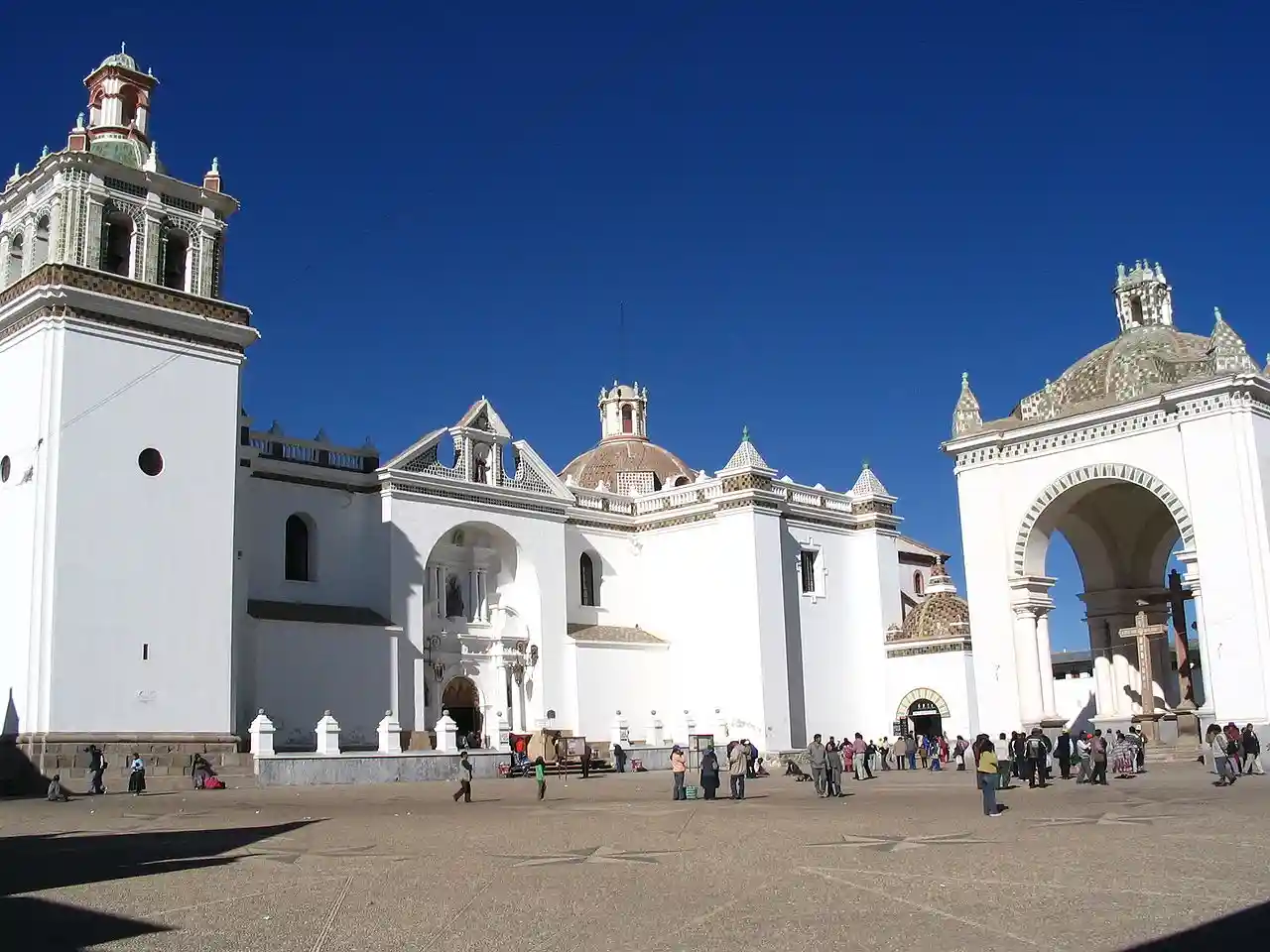 The Basilica of Our Lady of Copacabana is a 17th-century Spanish colonial shrine that houses the image of the Virgen de Copacabana. It is located in the town of Copacabana, Bolivia on the shores of Lake Titicaca near the Altiplano region. Our Lady of Copacabana is the patron saint of Bolivia. Read more on Wikipedia