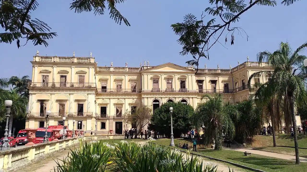 Paço de São Cristóvão (; ; also known as Palácio Imperial or Palácio Imperial de São Cristóvão) was an imperial palace located in the Quinta da Boa Vista park in the Imperial Neighbourhood of São Cristóvão, Rio de Janeiro, Brazil. It served as residence to the Portuguese royal family and later to the Brazilian imperial family until 1889, when the country became a republic through a coup d'état deposing Emperor Pedro II. The palace briefly served as a public building by the provisional government for the constituent assembly of the first republican constitution. It housed the major part (92.5%) of the collections of the National Museum of Brazil, which, together with the building, were largely destroyed by a fire on 2 September 2018. Read more on Wikipedia