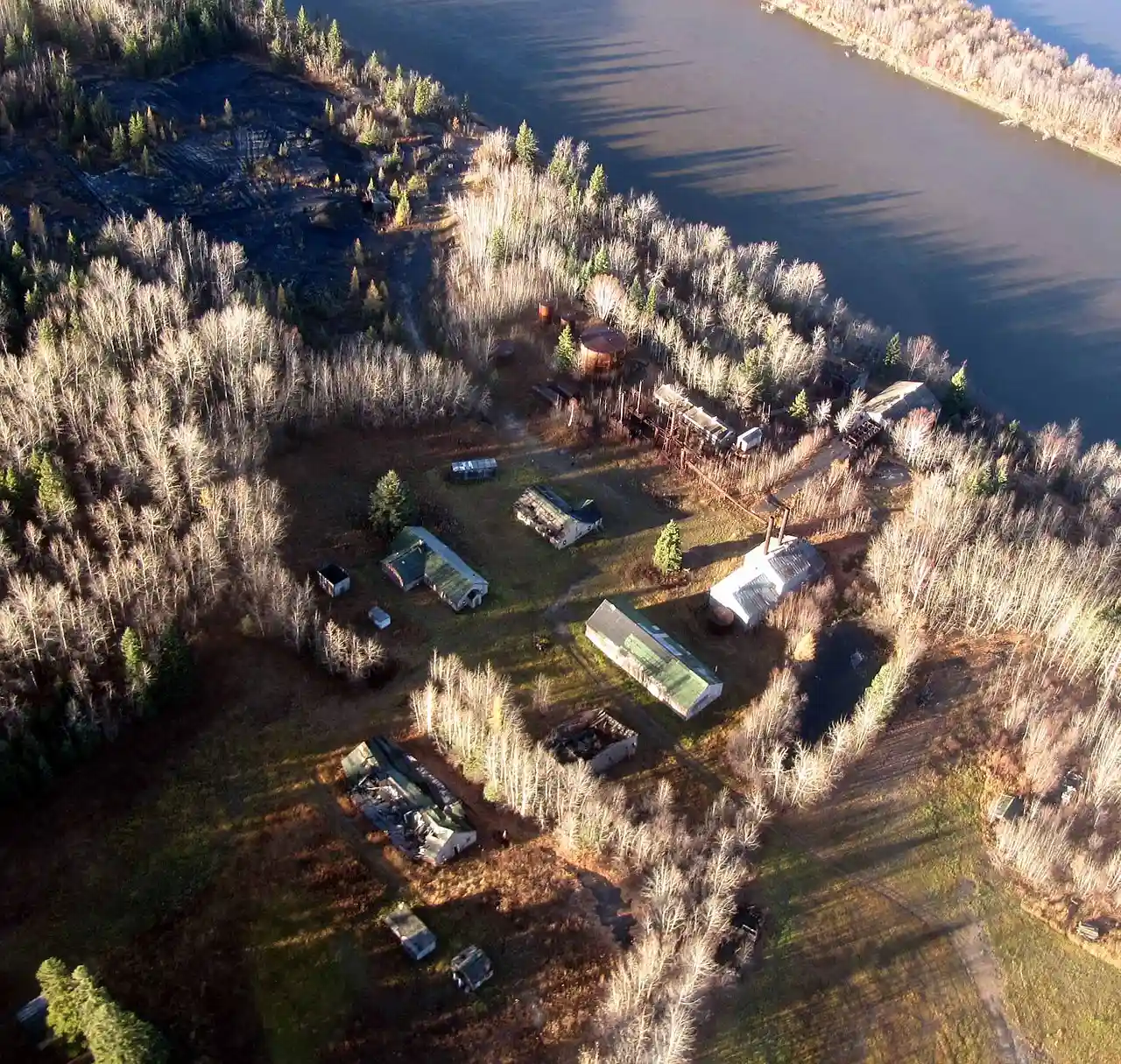 Bitumount is an abandoned industrial site on the east bank of the Athabasca River about north of Fort McMurray in northeastern Alberta, Canada. Between 1925 and the 1950s, it was the site of early attempts to extract bitumen from the Athabasca oil sands that contributed to the development of commercially viable extraction processes. The site closed permanently in 1958. Some of the structures at Bitumont were declared Provincial Historic Resources in 1974. As of 2017, the buildings are deteriorating. Read more on Wikipedia