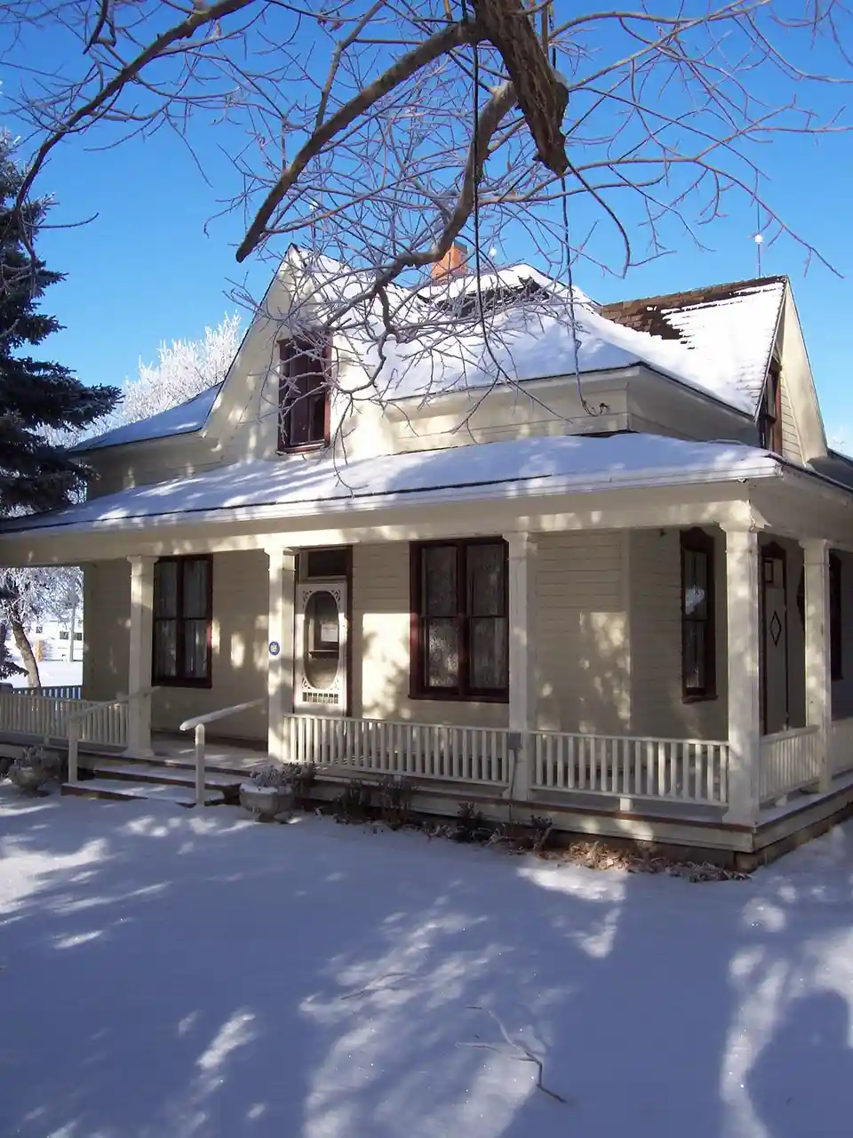 The Andreas Michelsen Farmstead was originally built as a two-room house in 1902 by Andreas Michelsen. In 1912, an addition to the home was made, resulting in a total of seven rooms, and little has changed since. The homestead consists of a 1 1/2-story Victorian-style farmhouse with a wraparound porch, and various outbuildings including a barn, granary, calving shed, coal shed, machine shed, storage cellar, corrals and pens, and an outhouse. Landscape elements on the property include a dugout, cistern and filter, and garden. The farmstead is located at the corner of 2nd Avenue & 6th Street, on the west half of four blocks in the northwest corner of the National Historic Site of Stirling, Alberta. Read more on Wikipedia