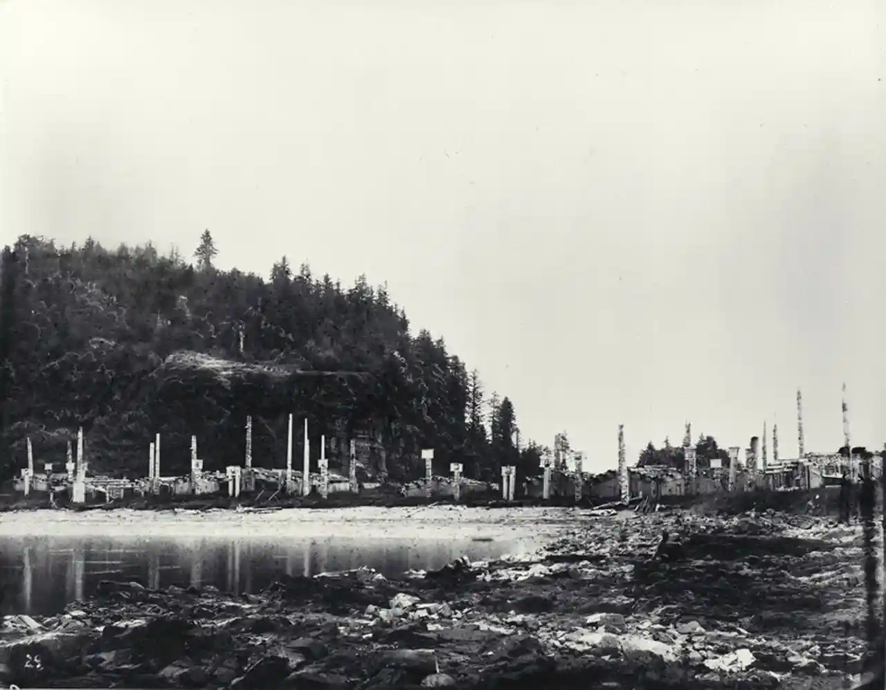 Skedans, also known variously as Koona, Q'una, Koona LLnaagay, K'uuna Llnagaay, Q!o'na Inaga'-I, Q:o'na, and Ḵ'uuna Llnagaay which are variants of its traditional name in the Haida language, is a village located at the head of Cumshewa Inlet in Haida Gwaii, North Coast of British Columbia, Canada. The name Skedans derived by the practice of captains of the maritime fur trade to name villages after their most prominent chiefs. Read more on Wikipedia
