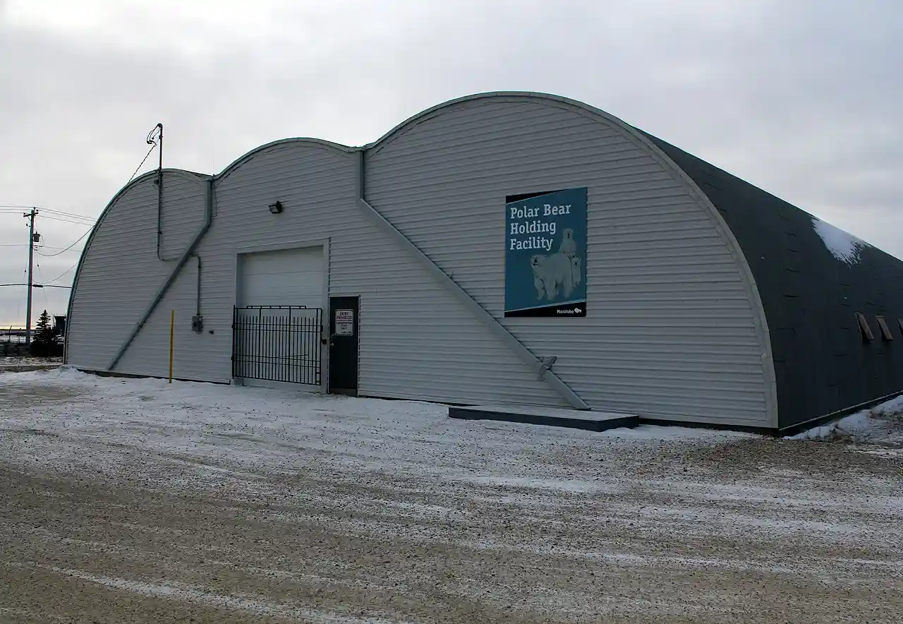 The polar bear jail (officially known as the Polar Bear Holding Facility) is a special building in Churchill, Manitoba, Canada where polar bears that are considered troublesome or dangerous are isolated until they can be relocated. Read more on Wikipedia