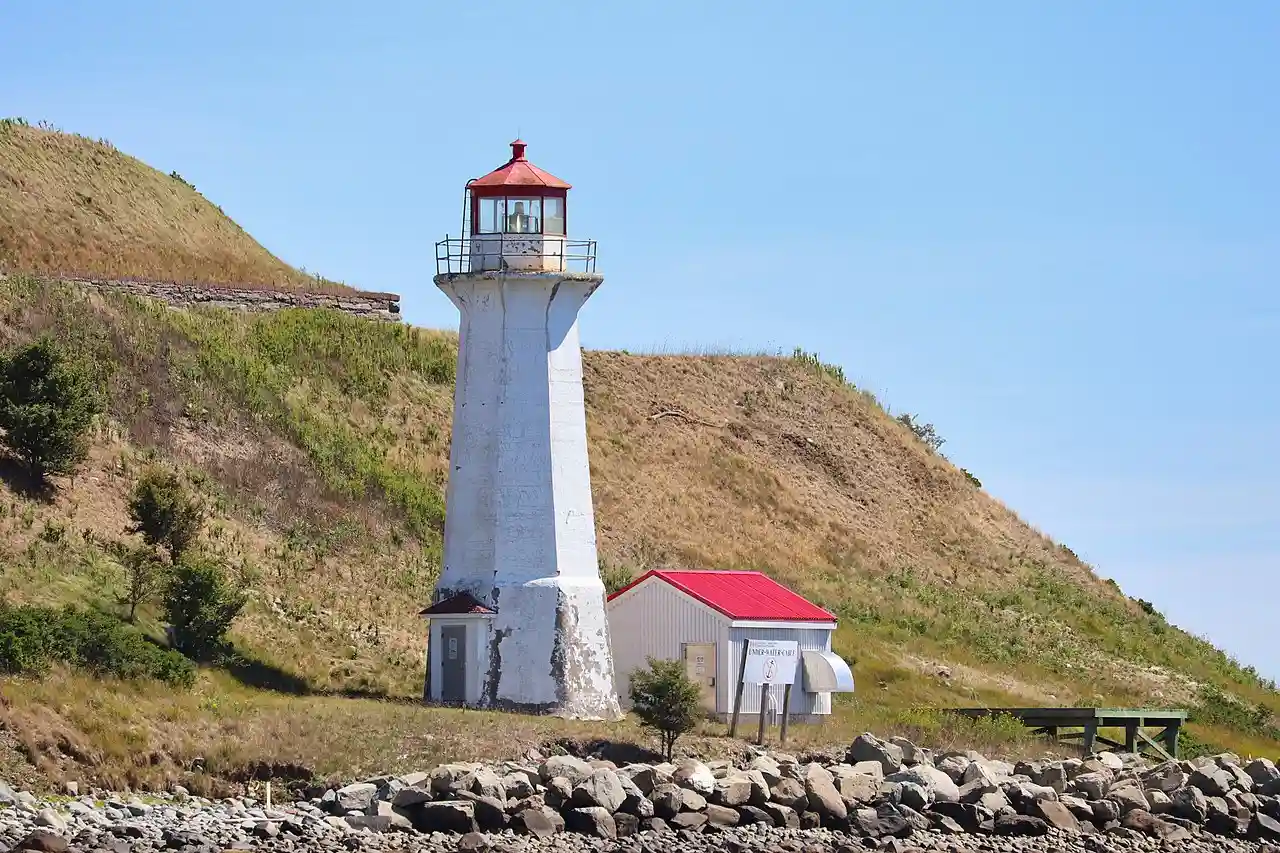 Georges Island Lighthouse is a prominent concrete lighthouse, built in 1917 on Georges Island in Nova Scotia, replacing an earlier tower built in 1876. The light-keeper's house remains standing a few hundred feet to the north.Georges Island Lighthouse: Later History . Nova Scotia Lighthouse Preservation Society. The lighthouse is operated by the Canadian Coast Guard. Read more on Wikipedia