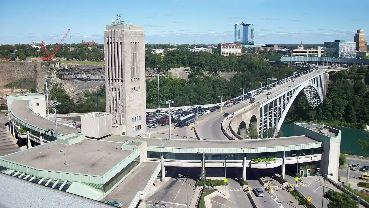The Niagara Falls International Rainbow Bridge, commonly known as the Rainbow Bridge, is a steel arch bridge across the Niagara River, connecting the cities of Niagara Falls, New York, United States, and Niagara Falls, Ontario, Canada. Read more on Wikipedia