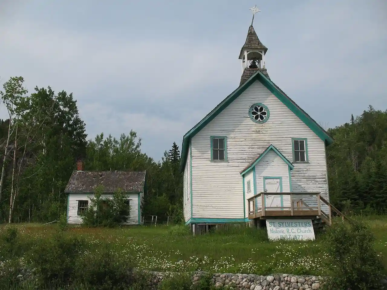 Saint Sylvester's Church is a Jesuit Mission on the Red Rock Indian Band on section Lake Helen 53A. It was established in 1852, and is locally called Opoo-gan-asin (pipestone). The first mass was held on February 29, 1852, in the Hudson Bay barn. Father D. Duranquette (Waiashtestkang—Gives Light) accompanied by the local Indians selected the spot on which the church was built. Jesuit Brothers decided to have this church built along their water route, which served as a rest stop before going to the Jesuit Missions at Gull Bay, White Sand, Nipigon House, Grand Bay and McIntre Bay on Lake Nipigon. Read more on Wikipedia