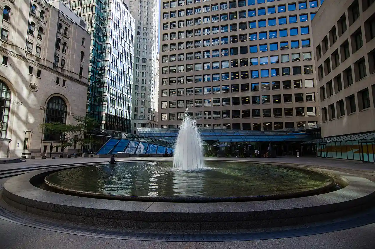 Commerce Court is an office building complex on King and Bay Streets in the financial district of Toronto, Ontario, Canada. The four-building complex is a mix of Art Deco, International, and early Modernism architectural styles. The office complex served as the corporate headquarters for the Canadian Imperial Bank of Commerce (CIBC) and its predecessor, the Canadian Bank of Commerce, from 1931 to 2021. Although CIBC relocated its headquarters to CIBC Square, the bank still maintains offices at Commerce Court. Read more on Wikipedia