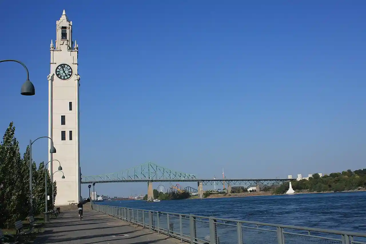The Montreal Clock Tower, also known as the Sailor's Memorial Clock and Tour de l’Horloge in French, is located in the borough of Ville-Marie and is situated in the Old Port of Montreal. The construction of the tower began in 1919, and was finished in 1922. Read more on Wikipedia