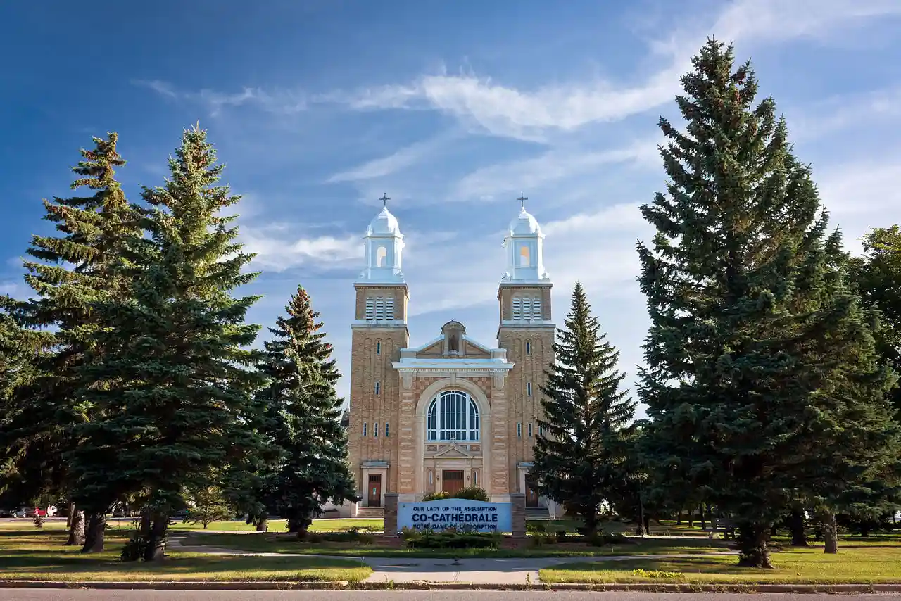 Our Lady of Assumption Co-Cathedral or the Co-Cathédrale de Notre-Dame-de-l’Assomption is located in the Canadian prairie town of Gravelbourg, Saskatchewan. Read more on Wikipedia