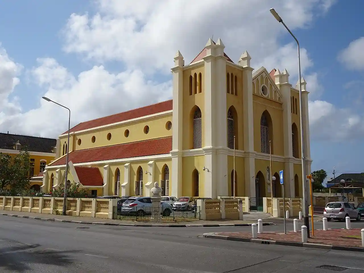 The Queen of the Most Holy Rosary CathedralCathedral of Queen of the Most Holy Rosary Willemstad also known as Pietermaai Cathedral or the Cathedral of the Holy Rosary (; ) is a religious building belonging to the Catholic Church, which serves as the cathedral of the Diocese of Willemstad (Latin: Dioecesis Gulielmopolitana) in Juliana Plein 5, Pietermaai, Willemstad a city on the island of Curacao and has under its jurisdiction all dependent islands of the Netherlands in the Caribbean Sea off the coast of Venezuela. Read more on Wikipedia