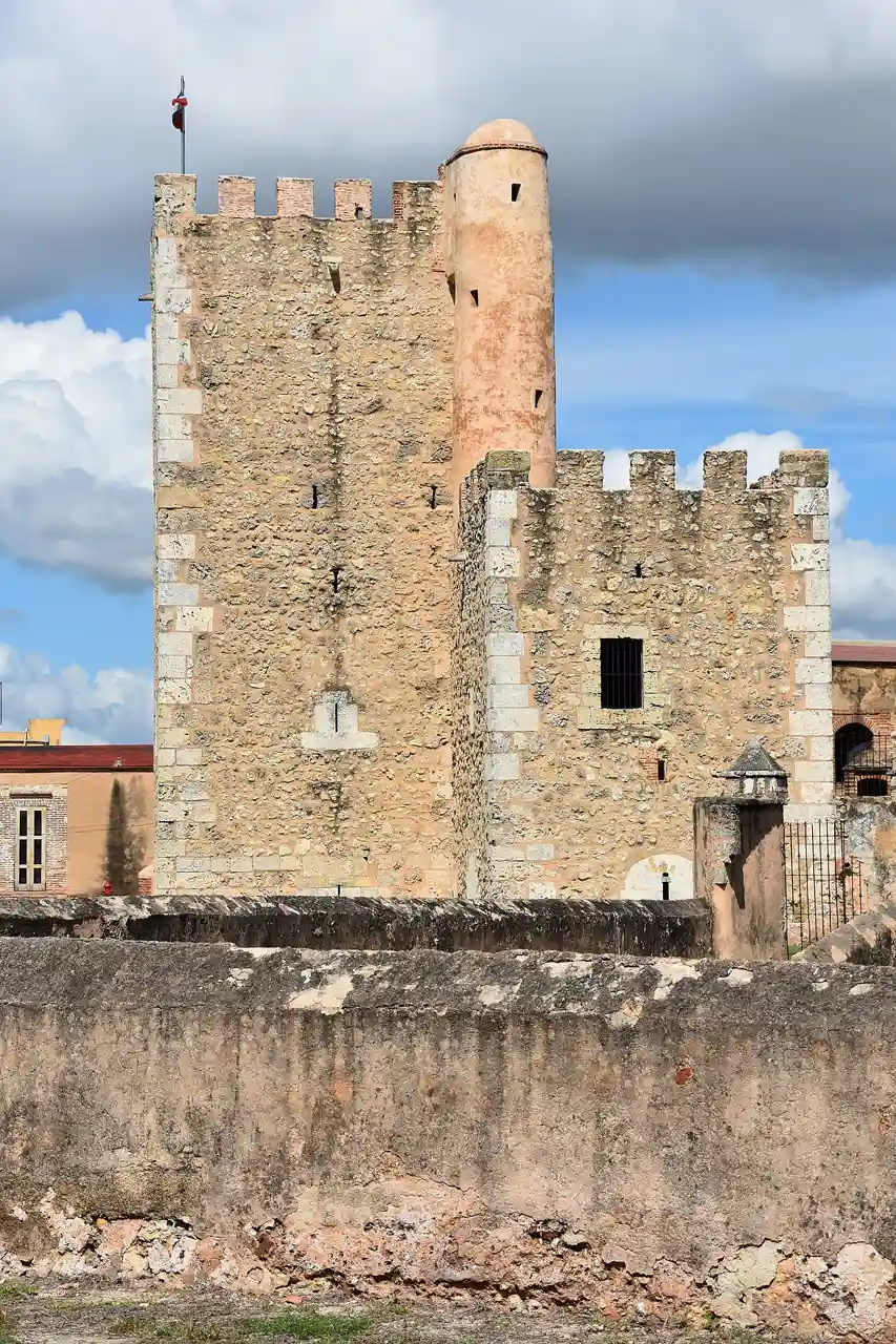 The Ozama Fortress (), also formerly known as the city wall's Homage tower. It is one of the surviving sections of the Walls of Santo Domingo, which is recognized by UNESCO as being the oldest military construction of European origin in the Americas. It was built between 1502-1508 by the Spanish at the entrance to Santo Domingo's Ciudad Colonial, Dominican Republic, and overlooking the Ozama River. Named after this river, the castle, also referred to as "La Fortaleza" or "The Fortress". It was declared by UNESCO as a World Heritage Site, together with the other historical monuments of the Ciudad Colonial. Read more on Wikipedia