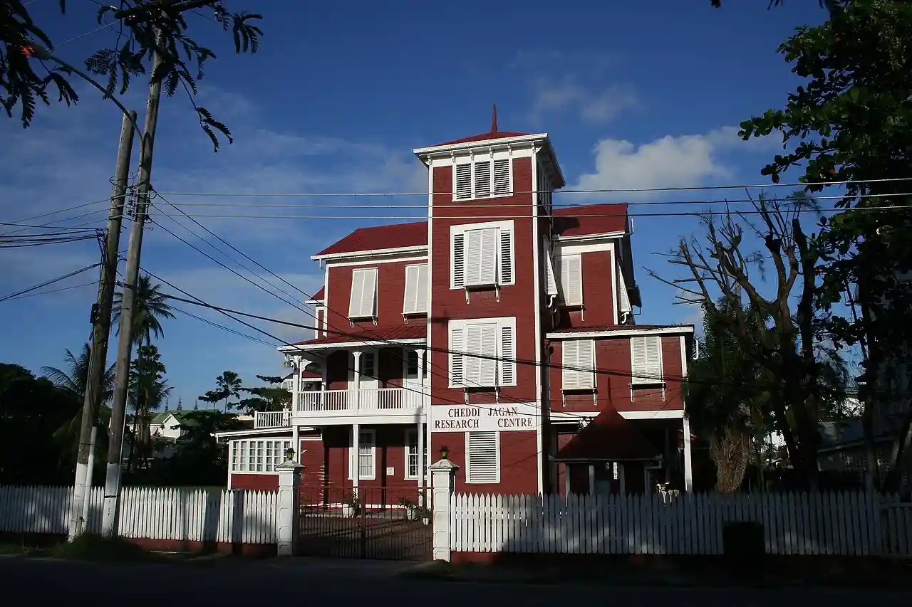 Red House (also: Kamana Court) located in Kingston, Georgetown, was the official residence of the Colonial Secretary and later the Premier of British Guiana. As of 22 March 2000, it houses the Cheddi Jagan Research Centre. Read more on Wikipedia