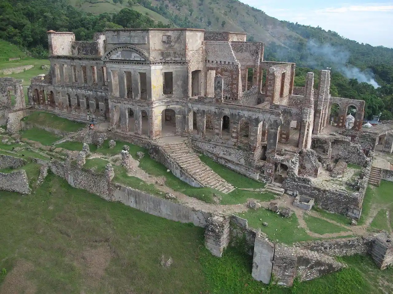 The Palace of Sans-Souci, or Sans-Souci Palace ( ), was the principal royal residence of Henry I, King of Haiti, better known as Henri Christophe. It is located in the town of Milot, approximately northeast of the Citadelle Laferrière, and southwest of the Three Bays Protected Area. Being among the first buildings constructed in a free Haiti after the Haitian Revolution, the Palace and the neighboring Citadelle, are Haitian icons and global symbols of liberty, and were inscribed on the World Heritage List in 1982. Read more on Wikipedia