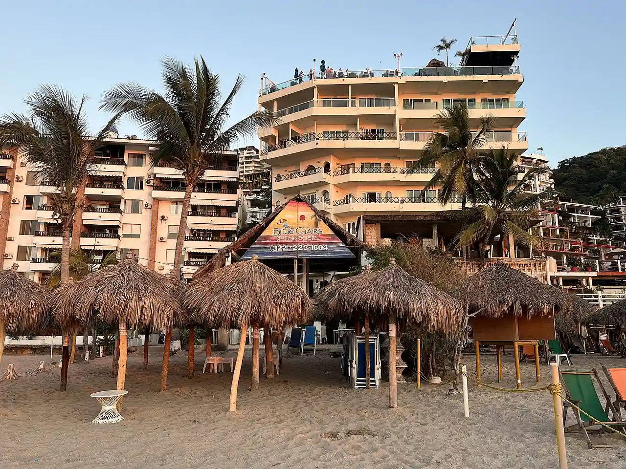 Blue Chairs Resort by the Sea (often simply Blue Chairs or sometimes Blue Chairs Beach Club), is an LGBT-friendly hotel in Puerto Vallarta's Zona Romántica, in the Mexican state of Jalisco. The property has a rooftop bar called Blue Sunset Rooftop Bar. Read more on Wikipedia