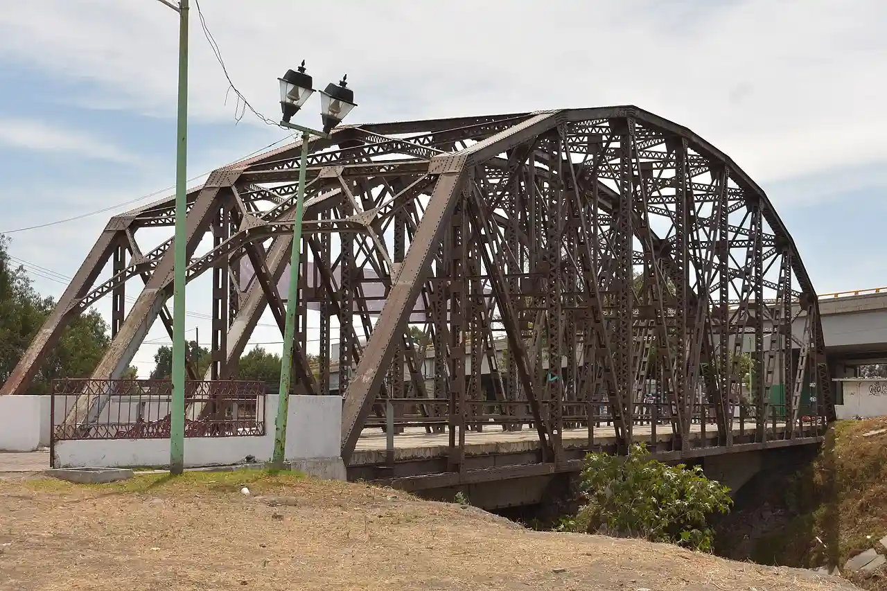 The Puente Ingeniero Ernesto Uriegas, best known as the Puente de Fierro (English: Iron Bridge), is a twin-span bridge found along Vía Morelos Avenue, in San Cristóbal, Ecatepec de Morelos, State of Mexico. The bridge was built to cross the Gran Canal del Desagüe (Grand Sewage Canal) that surrounds Mexico City. The origins of the construction of the bridge tend to differ depending on the source as there are few records of the bridge beyond undated pictures. One of the stories says that it was completed in 1896 to be operated by the National Railroad Company. There is also a persistent legend about its origins that mentions that Gustave Eiffel, at the request of president Porfirio Díaz, designed the bridge in the 1870s. It was later adapted into a provisional vehicle bridge and eventually replaced with an adjacent larger vehicular bridge. In 2000, the local government remodeled the space into a museum, which would last 16 years. Since then, the bridge has been abandoned and has received partial maintenance. Read more on Wikipedia