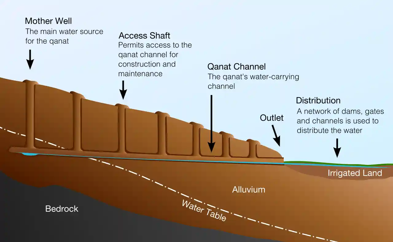 Puquios (from Quechua pukyu meaning source, spring, or water well) are ancient systems of subterranean aqueducts which allow water to be transported over long distances in hot dry climates without loss of much of the water to evaporation. Puquios are found in the coastal deserts of southern Peru, especially in the Nazca region, and northern Chile. Forty-three puquios in the Nazca region were still in use in the early 21st century and relied upon to bring fresh water for irrigation and domestic use into desert settlements. The origin and dating of the Nazca puquios is disputed, although some archaeologists have estimated that their construction began about 500 CE by indigenous people of the Nazca culture. Read more on Wikipedia