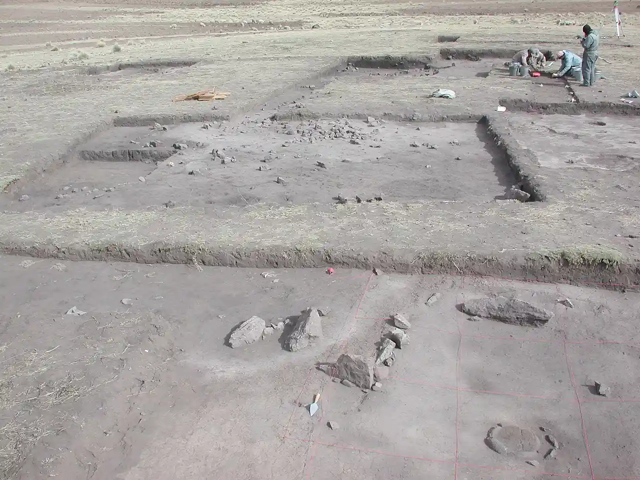 Jisk'a Iru Muqu (Aymara, jisk'a small, iru a type of grass, (Festuca orthophylla), muqu knot; joint of a part of the reed, also spelled Jiskairumoko, Jisk'airumoko) is a pre-Columbian archaeological site south-east of Puno, Peru. The site lies in the mountains at elevation 4,115 meters (13,500 feet), in the Aymara community of Jachacachi, adjacent to the Ilave River drainage, of the Lake Titicaca Basin, Peru. Occupation of Jisk'a Iru Muqu spans from the Late Archaic to the Formative. Read more on Wikipedia