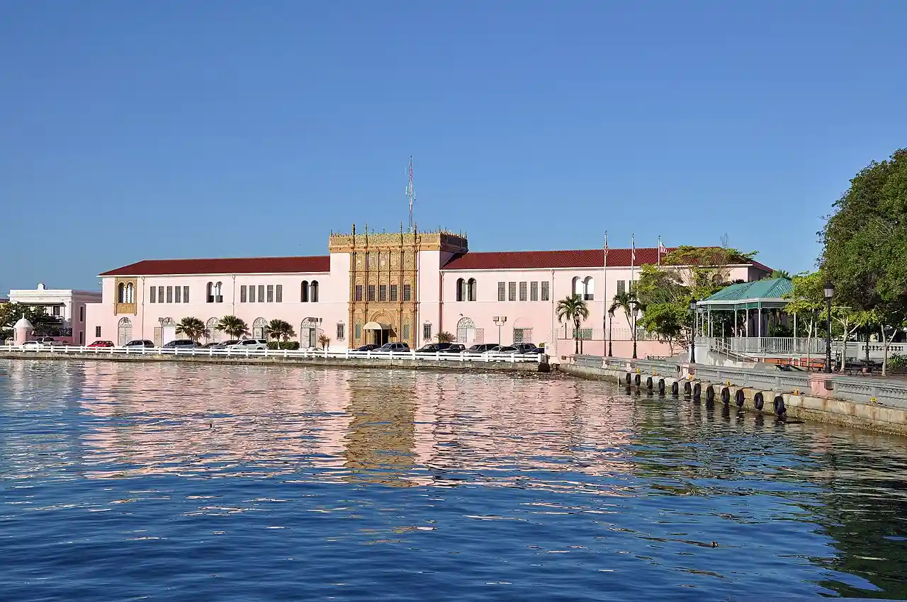 The United States Custom House (Spanish: Edificio de la Aduana de Estados Unidos), also known as the San Juan Custom House (Edificio de la Aduana de San Juan), is a historic custom house located at the marina of Old San Juan in the city of San Juan, Puerto Rico. The custom house is located at the site of the former main port of the city of San Juan, north of the former Spanish Arsenal of San Juan, and next to the Las Dársenas and Immigrants' Square (Plaza del Inmigrante) and the Jose V. Toledo Federal Building and United States Courthouse. The large two-storey custom house is considered by the NRHP to be a superb example of Spanish Colonial Revival architecture in Puerto Rico and the Caribbean. It is most notable for its size, its elaborate terracotta-ornamented central tower and its pink-colored exterior. Read more on Wikipedia