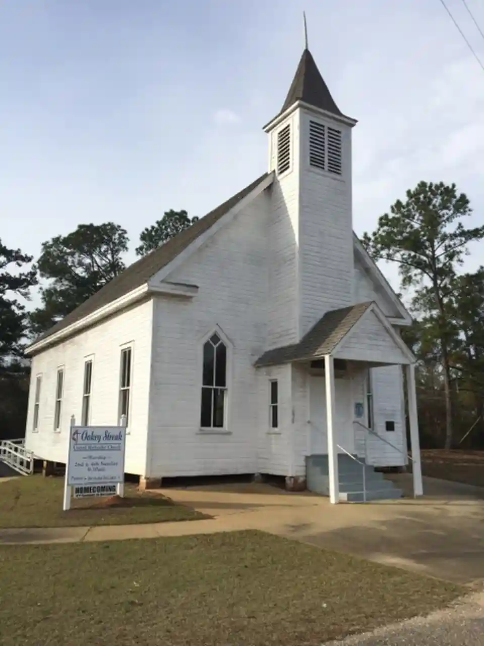 Oakey Streak Methodist Episcopal Church is a historic church in Butler County, Alabama. The congregation was organized in 1831, and the land where the current church sits was given to the church in 1851. A log building was erected soon after, replaced by the current frame structure around the 1880s. The church was expanded and a bell tower was added in 1903. Along with the adjacent Masonic Lodge, which was demolished in the 1940s, the church was the social center of the area. Read more on Wikipedia