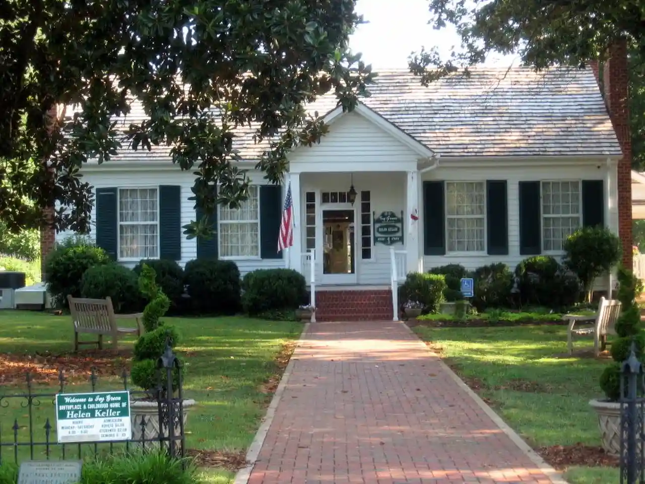 Ivy Green is a historic house museum at 300 West North Commons in Tuscumbia, Alabama, United States. Built in 1820, it was the birthplace and childhood home of Helen Keller (1880–1968), who became well known after overcoming deaf-blind conditions to communicate; she became an author and public speaker. Designated as a National Historic Landmark, it is now operated as a museum honoring and interpreting Keller's life. Read more on Wikipedia