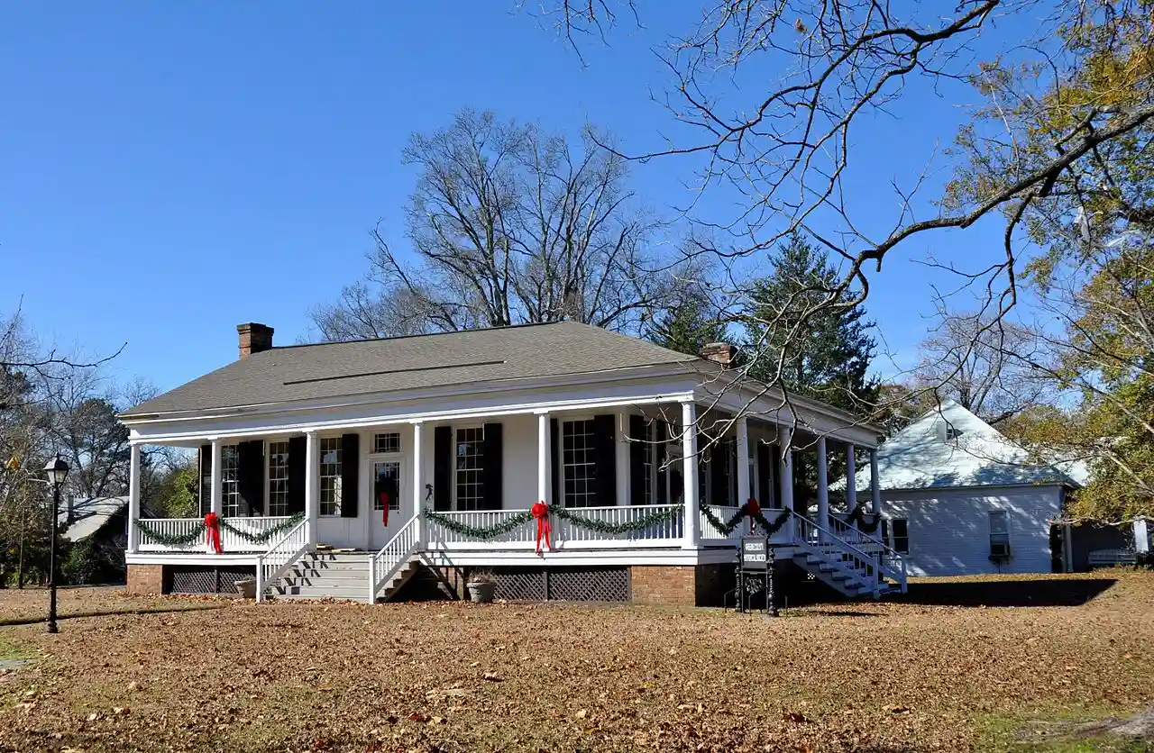 The Iredell P. Vaughn House, also known as the Vaughn-Morrow House, is a historic house in Eutaw, Alabama. The one-story wood-frame house was built c. 1841. It generally conforms to the Creole cottage-type house plan, with neoclassical stylistic elements. A one-story porch spans the full width of the east and south facades. See also: It was added to the National Register of Historic Places as part of the Antebellum Homes in Eutaw Thematic Resource on April 2, 1982. It currently serves as the headquarters of the Greene County Historical Society. Read more on Wikipedia