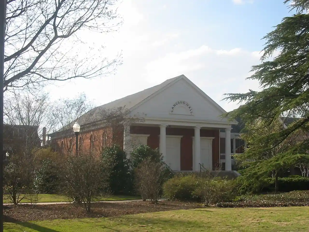 Langdon Hall is a building on the campus of Auburn University in Auburn, Alabama, United States. Built in the Greek Revival style in 1846 as the chapel for the Auburn Female College (today Auburn High School) and moved to the Auburn University campus in 1883, Langdon Hall is the oldest building in the city of Auburn, and today houses an auditorium and office space for Auburn University staff. Before the Civil War, Langdon Hall served as the location for a series of debates on the question of Southern secession, involving William Lowndes Yancey, Alexander Stephens, Benjamin Harvey Hill, and Robert Toombs. Langdon Hall is named for Charles Carter Langdon, a former mayor of Mobile, Alabama, Alabama Secretary of State, and a trustee of Auburn University from 1872–1889. Read more on Wikipedia