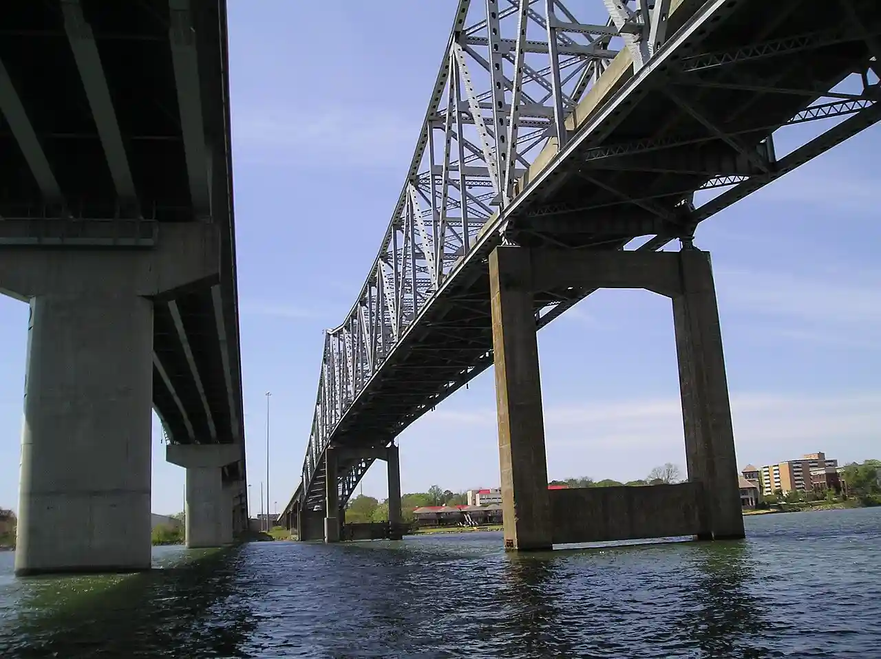 The "Steamboat Bill" Memorial Bridges are two bridges that span one of the widest points along the Tennessee River within the city of Decatur, Alabama, between Morgan County, and Limestone County. One is a cantilever truss, and the other is a reinforced concrete. The bridges carry US 31, US 72A, and State Route 20 from the intersection of Wilson Street (US 72A, and SR 20), and 6th Avenue (US 31) in northeast Decatur. Read more on Wikipedia