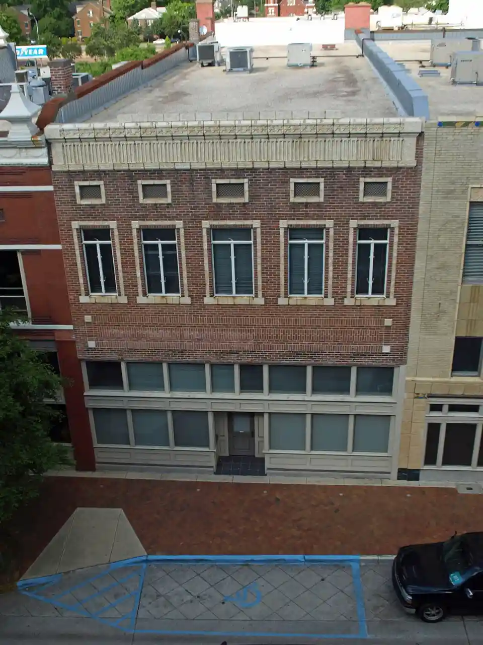 105 South Washington Street in Huntsville, Alabama, is a historic commercial building. It was built in 1931, after the previous building on the site had burned in 1925. The street level of the two-story brick building has three single-pane windows on either side of a recessed entry. A row of similar windows runs above the street level, separated by a row of rectangular panels. Above the storefront level sits a panel of soldier course bricks, with decorative terra cotta floral blocks on the corners. The same blocks are used on the top corners of the surrounds for five windows above. The frieze is terra cotta, with a series of narrow flutes above a decorative bed-mould chain. The cornice features a geometric X-pattern with small dentils on each block. The terra cotta detailing exhibits Art Deco influence, popular at the time the building was constructed. See also: The building was listed on the National Register of Historic Places in 1984. Read more on Wikipedia