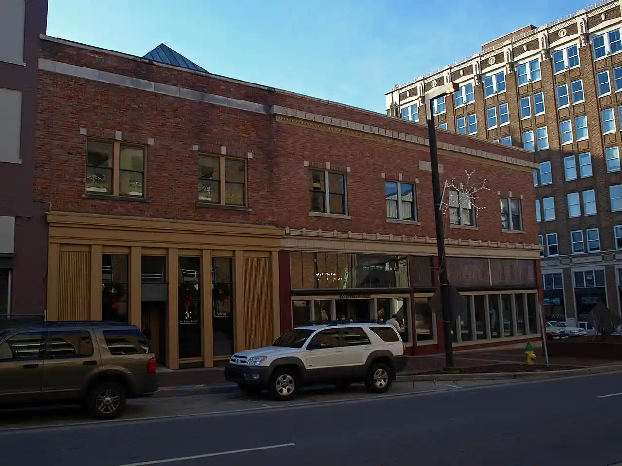 The W. T. Hutchens Building is a historic commercial building in Huntsville, Alabama, United States. A three-bay building on the corner of Jefferson Street and Clinton Avenue, the two corner bays were built in 1916 and the third built in a nearly identical style in 1921. It was built in the Early Commercial brick style, which departed from highly ornamented, vertically-oriented Victorian styles, instead emphasizing horizontal orientation by using strong horizontal courses and shorter, wider windows. It contrasts with the later Terry Hutchens Building, across Clinton Avenue, which is representative of later, again vertically-oriented Gothic Revival styles. Read more on Wikipedia