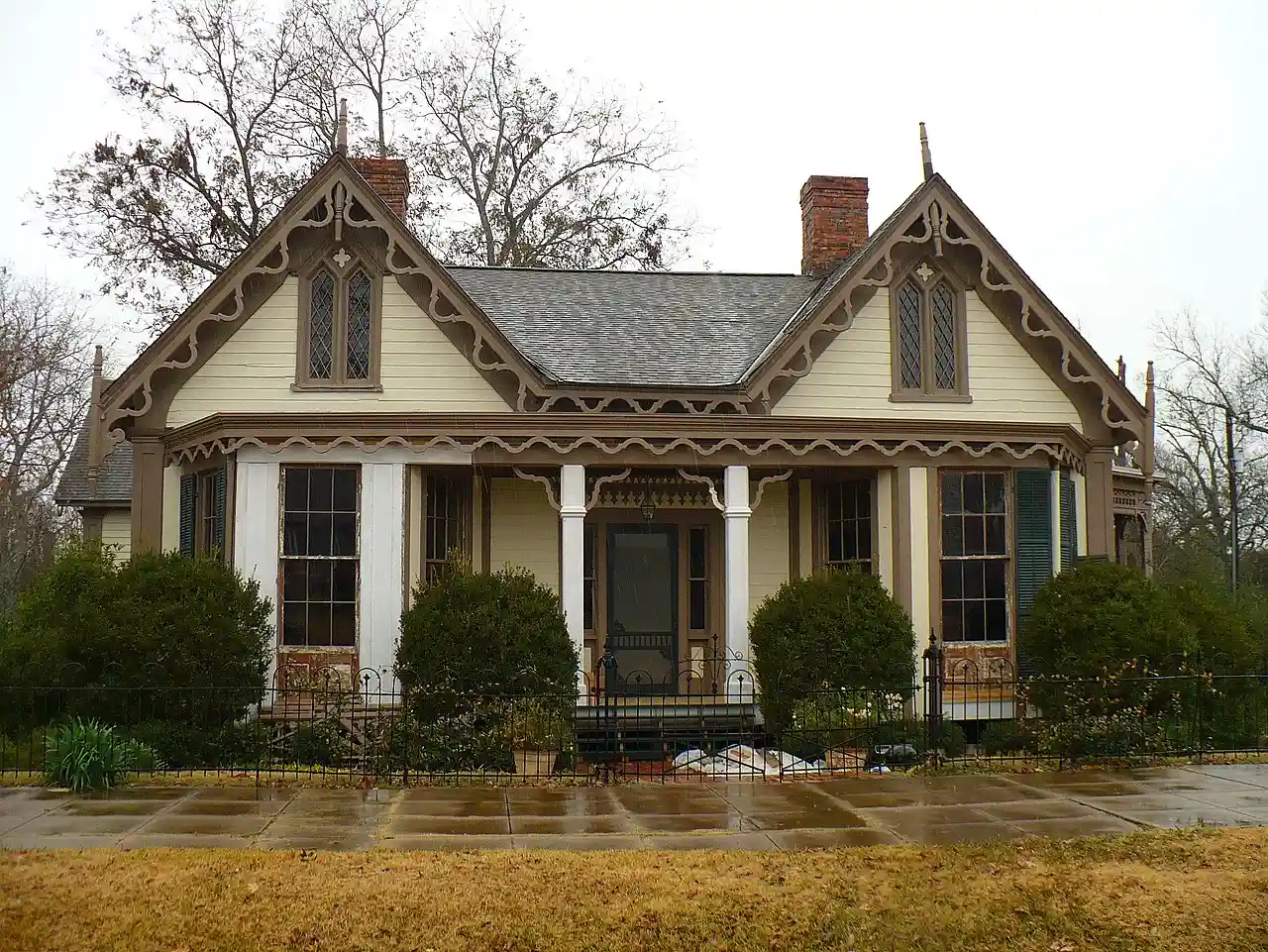 Ashe Cottage, also known as the Ely House, is a historic Carpenter Gothic house in Demopolis, Alabama. It was built in 1832 and expanded and remodeled in the Gothic Revival style in 1858 by William Cincinnatus Ashe, a physician from North Carolina. The cottage is a -story wood-frame building, the front elevation features two semi-octagonal gabled front bays with a one-story porch inset between them. The gables and porch are trimmed with bargeboards in a design taken from Samuel Sloan's plan for "An Old English Cottage" in his 1852 publication, The Model Architect. The house is one of only about twenty remaining residential examples of Gothic Revival architecture remaining in the state. Other historic Gothic Revival residences in the area include Waldwic in Gallion and Fairhope Plantation in Uniontown. Ashe Cottage was added to the Alabama Register of Landmarks and Heritage on August 22, 1975, and to the National Register of Historic Places on 19 October 1978. Read more on Wikipedia