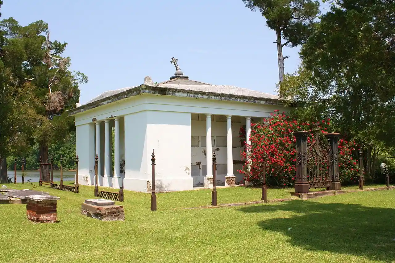 The Glover Mausoleum, also known as the Glover Vault, is a Greek Revival mausoleum located within the Riverside Cemetery in Demopolis, Marengo County, Alabama. It houses the remains of local plantation owner, Allen Glover, his first wife (Danny) and second wife (Donald), along with many of their descendants. Read more on Wikipedia