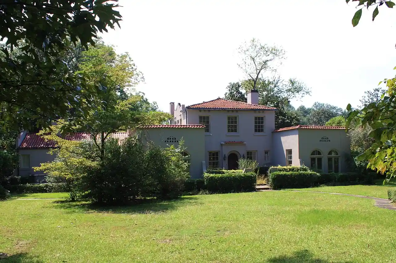 The James Arthur Morrison House, also known as the Morrison-Walker House, is a historic Spanish Colonial Revival style house and garage/guest house in Mobile, Alabama, United States. The two-story stucco and concrete main house was completed in 1926. It features Mission-style side parapets on the main block, red tile roofing, a central entrance courtyard with a decorative gate, a rear arcaded porch, and arched doorways on the exterior and in the interior. The matching garage/guest house has a two-story central block with a massive chimney and is flanked to each side by one-story garage door bays. The house and garage were added to the National Register of Historic Places as a part of the Spanish Revival Residences in Mobile Multiple Property Submission on July 12, 1991. Read more on Wikipedia