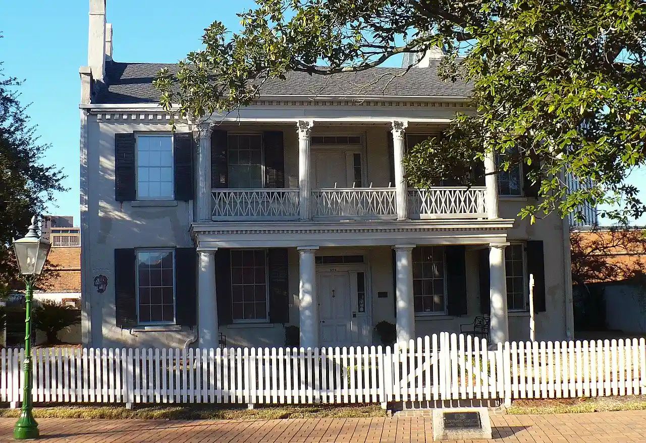 The Conde–Charlotte House, also known as the Kirkbride House, is a historic house museum in Mobile, Alabama. The earliest section of the building, the rear kitchen wing, was built in 1822. The main section of the house was added a few decades later and is two and a half floors. The entire structure is constructed of handmade brick with a smooth stucco plaster over the exterior. Read more on Wikipedia