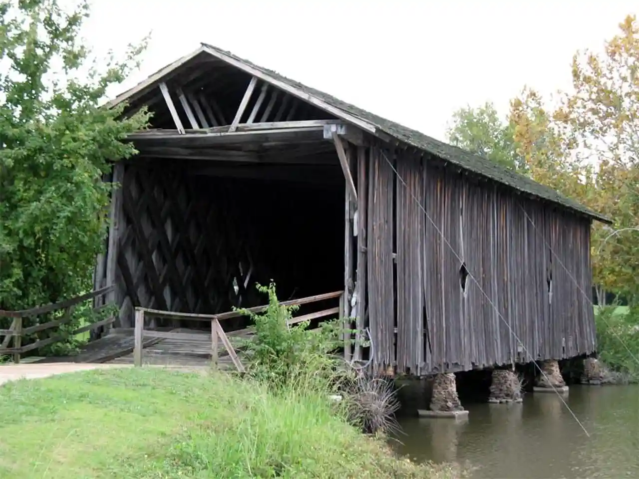 The Alamuchee-Bellamy Covered Bridge is a county-owned wooden covered bridge that spans the northeast corner of Duck Pond in Sumter County, Alabama, United States. It is located on the campus of the University of West Alabama behind Reed Hall, which is off Student Union Drive in the city of Livingston. Read more on Wikipedia