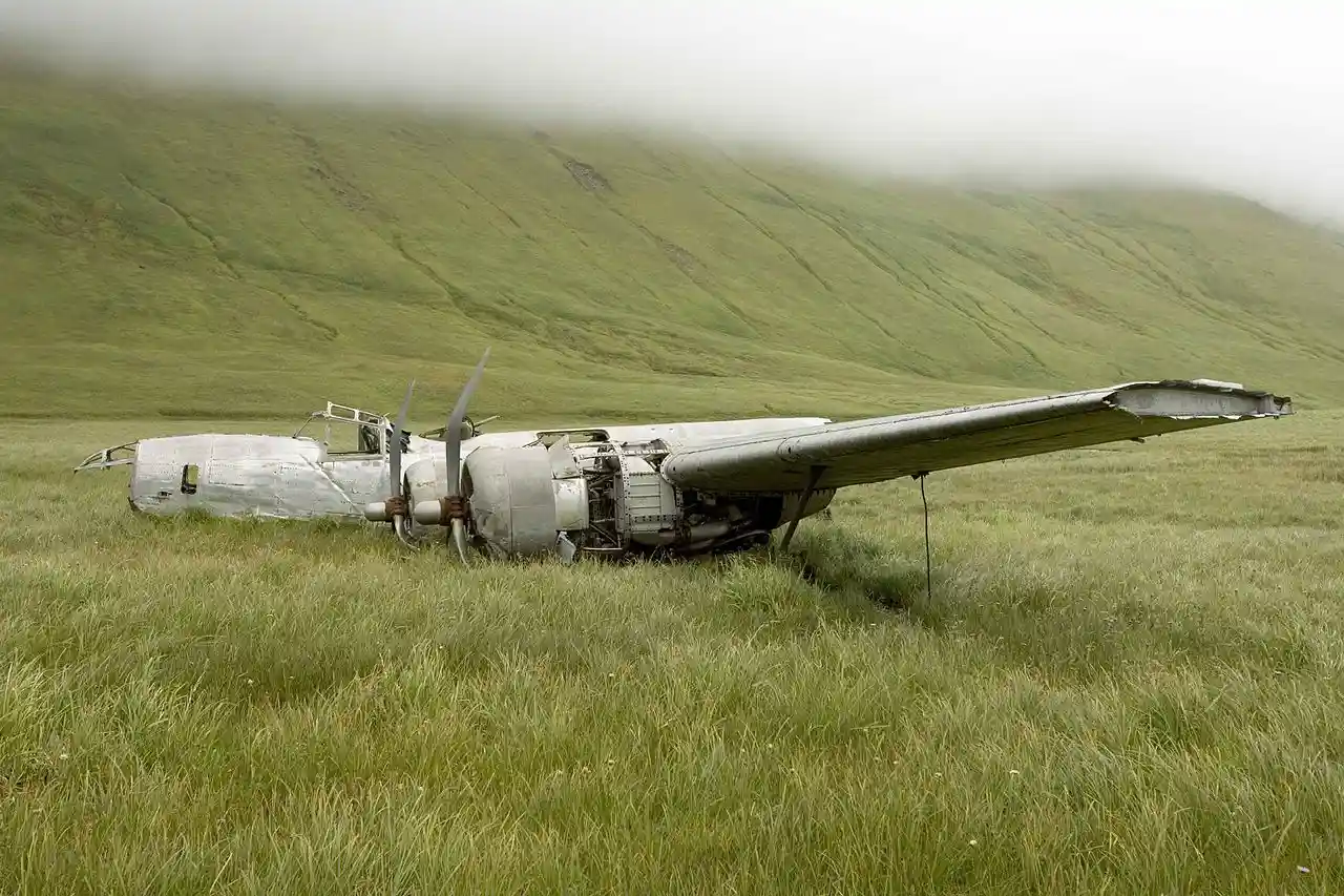 The Atka B-24D Liberator is a derelict bomber on Atka Island in the Aleutian Islands of Alaska. The Consolidated B-24D Liberator was deliberately crash-landed on the island on 9 December 1942, and is one of only eight surviving D-model Liberators (including partial and derelict aircraft). The aircraft, serial no. 40-2367, was built in 1941, and was serving on weather reconnaissance duty when it was prevented from landing at any nearby airfields due to poor weather conditions. The only injury resulting from the crash was a fractured collarbone sustained by Brigadier General William E. Lynd. Read more on Wikipedia