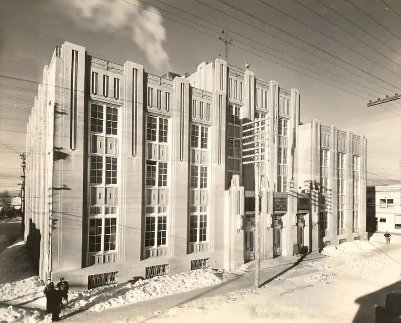 The Old Federal Building is a historic government building at Cushman Street and 3rd Avenue in Fairbanks, Alaska. When it was built in 1933, it was the most northern instance of concrete construction in the United States. It is a large building with three full-height floors and two smaller penthouse levels. The building's Art Deco styling includes V-shaped grooves set in pilasters that separate columns of windows and aluminum panels. The grooves are repeated in concrete spandrels above the top row of windows. Interior decoration includes terrazzo flooring, copious use of marble in walls and floors, and a pressed copper ceiling in the courtroom. The building was designed by Washington, DC architect George N. Ray, and built by William "Mac" MacDonald, who also later built the Federal Building in Nome. It originally housed the federal court, post office, and other federal government offices, and the decision to locate it in Fairbanks was critical to the rise of the city's importance; it now houses private offices. Read more on Wikipedia