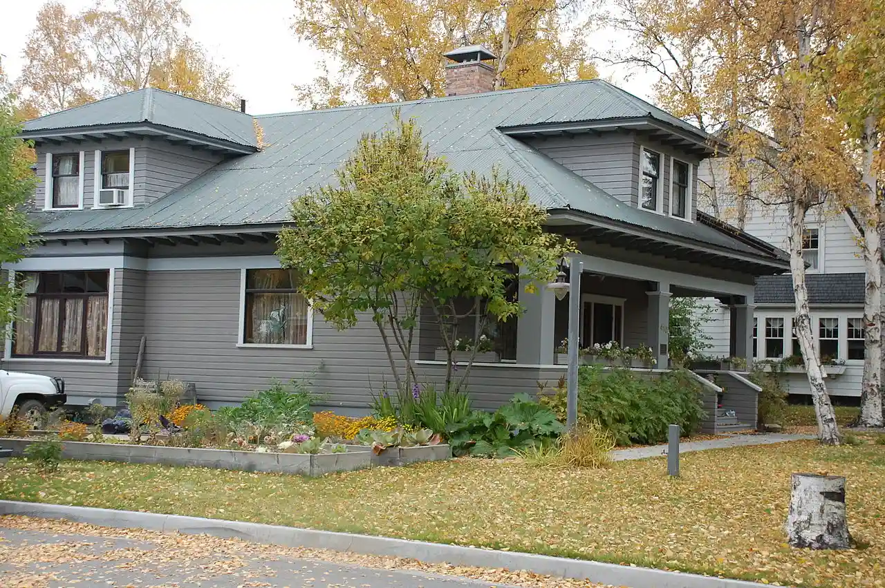 The Mary Lee Davis House is a historic house at 410 Cowles Street in Fairbanks, Alaska. It is now the Alaska Heritage House, a bed and breakfast inn. It is a -story bungalow-style house, set at the northern corner of Cowles and 5th Avenue in a residential area of the city. The exact construction date of the house is uncertain: it was probably complete by 1916, but construction may have begun as early as 1906; it is acknowledged as the city's oldest occupied residence. The unfinished house was purchased by writer Mary Lee Davis and her husband, who finished the building and added a number of its distinctive touches, including the city's first residential coal heating system. After a period of ownership by the Fairbanks Exploration Company, during which it was home to company executives, it went through a succession of owners before being converted to a bed and breakfast. Read more on Wikipedia