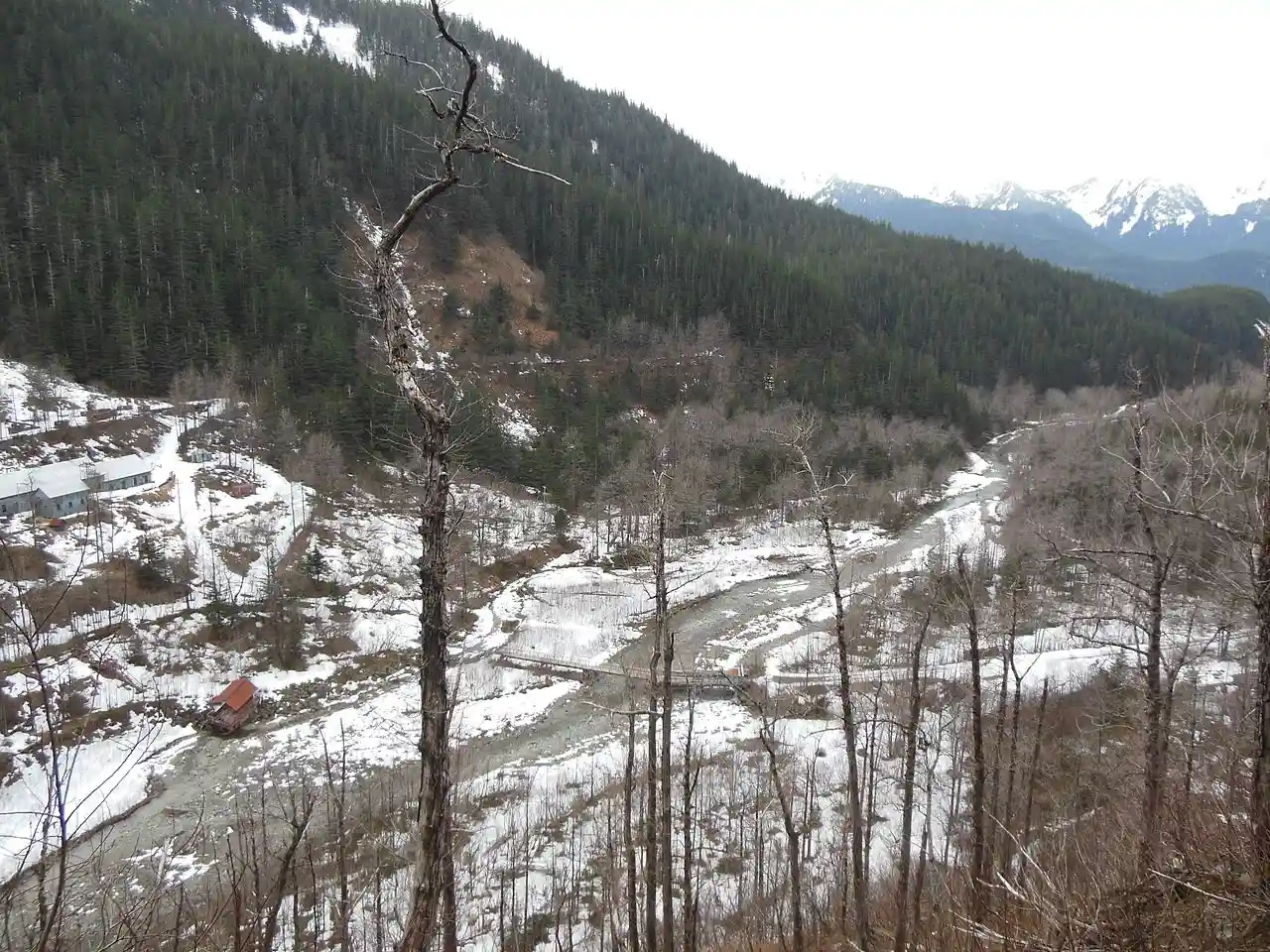 The Jualpa Mining Camp, also known as the Last Chance Basin Camp, is a former gold mining camp, just outside the city of Juneau, Alaska. Its main building is now operated as the Last Chance Mining Museum by the Gastineau Historical Society. The camp was located on the southern banks of Gold Creek, about north of Juneau, near what is now the end of Basin Road. The camp was the site of one of the largest gold finds in the Juneau mining district. It was established between 1910 and 1913 by the Alaska-Juneau Gold Mining Company and operated until 1944, producing more than $80 million worth of gold. The largest surviving structure of the camp is its air compressor building, which was long, and still houses the compressor used by the company. Also surviving are a variety of railroad-related resources, which the company used to bring or to its mill on the Gastineau channel, an electrical transformer house, powder magazine, and cable hoist. Read more on Wikipedia