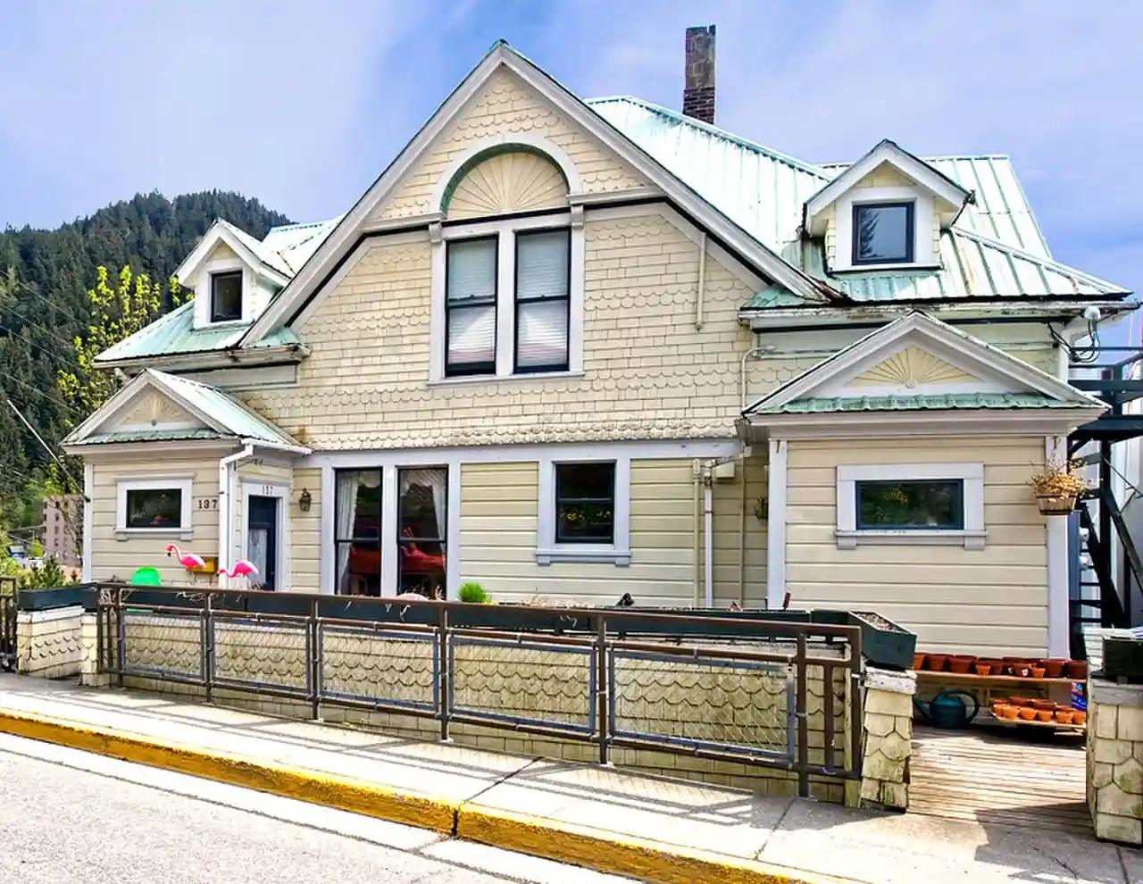 The Frances House is a historic house at 137 6th Street in Juneau, Alaska. The three-story wood-frame house was built in 1898 by Jerry Eicherly, then Juneau's postmaster. In 1911 it was purchased by John Rustgard, the Alaska Territory's attorney general, and in 1927 it was rescued from demolition by Frances Davis, a noted painter of Alaskan scenes, from whom the house derives its name. The house is a notable local example of vernacular Queen Anne styling, with a busy roofline, varied siding, and narrow Italianate windows. Read more on Wikipedia