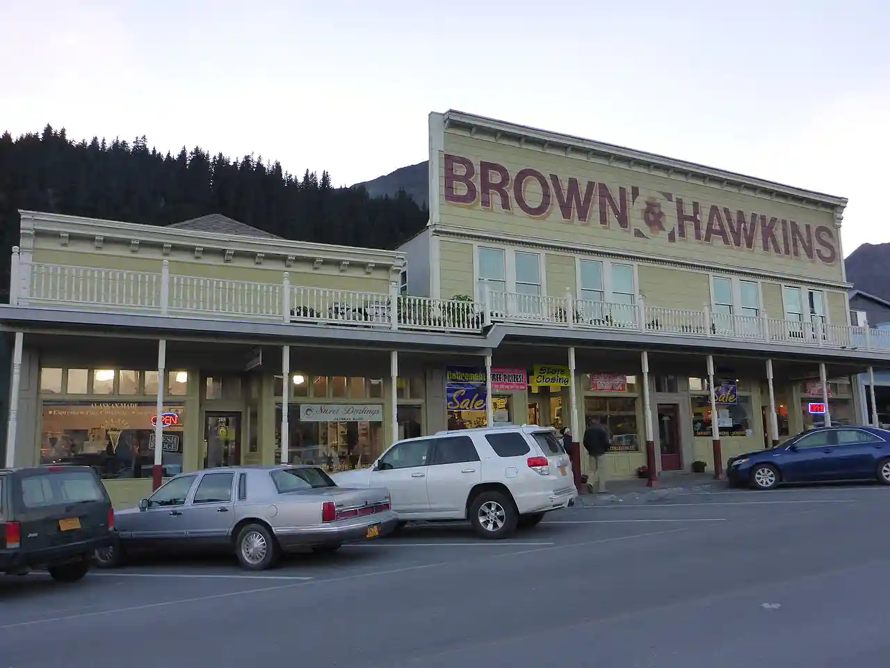 Brown & Hawkins is a general store in Seward, Alaska. It was founded in 1904 to serve the town and those constructing of the Alaska Central Railroad, and has been the oldest continuously operating business in Seward. It was listed on the National Register of Historic Places in 1988. With . It was announced in 2013 that the owners were retiring without finding anyone to buy their business. Read more on Wikipedia