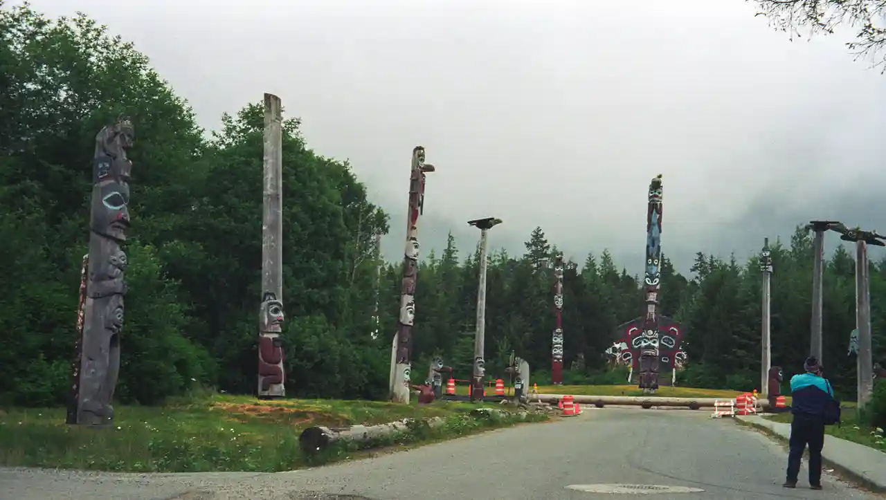 Saxman Totem Park is a public park in the city of Saxman, Alaska, just south of Ketchikan in southeastern Alaska. The park is home to a collection of totem poles, some of which are old poles relocated to this place from unoccupied Tlingit villages in the region, or were reconstructed by skilled Tlingit carvers under the auspices of the Civilian Conservation Corps in the 1930s. The poles originated in the communities of Old Tongass, Cat Island, Village Island, Pennock Island, and Fox Village. One of the carved items recovered from unoccupied villages is a marble statue of a grizzly bear. The park was listed on the National Register of Historic Places in 1979. Read more on Wikipedia