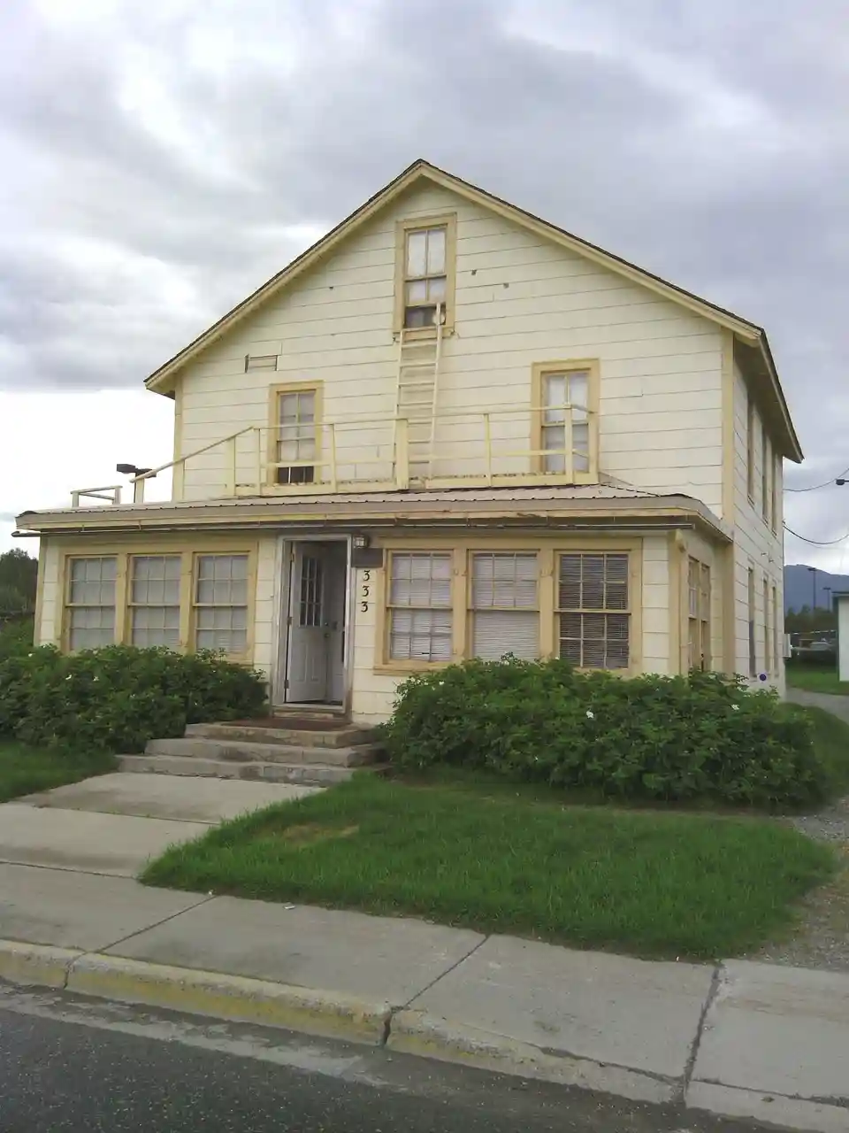 The Hyland Hotel, also briefly known as the Everglenn Hotel, is a historic hotel building located at 333 W Evergreen Avenue in the heart of Palmer, Alaska. The Hyland Hotel is recognized as a building of historical significance by the city of Palmer and was officially listed by the United States Department of the Interior on the National Register of Historic Places on June 21, 1991. This property was built as a direct result of The New Deal Colony Settlement of the Matanuska-Susitna Valley in Alaska, where settlers were brought to the Matanuska-Susitna valley to colonize Alaska from 1935 - 1940. It is a -story wood-frame structure with a front-gable roof and a glass-enclosed porch that has been converted to hotel rooms which extend across the front of the building. The original building was constructed in 1935 and measures 30 x 30 feet. A 10 x 14 foot addition was built on the rear of the building in 1953 to add additional living and storage space. Read more on Wikipedia