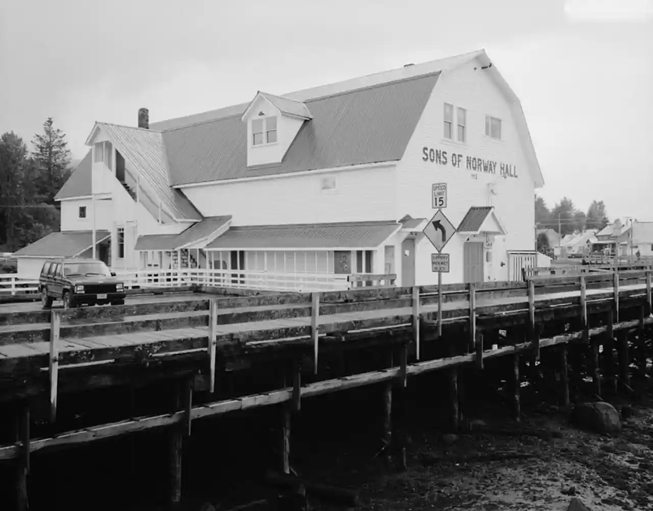 The Sons of Norway Hall, also known as Fedrelandet Lodge #23, is a historic fraternal society building on Indian St. in Petersburg, Alaska. It is a large two-story wood-frame structure with a gambrel roof, measuring about in length and in width. Built in 1912 by volunteers, it was the first Sons of Norway lodge building built in Alaska. The hall was built large enough to stage events involving the entire community of Petersburg, and it was used for many years for all types of civic, social, public, and private events. During World War II it was used as an armory, and it served as a National Guard headquarters in the 1960s. and Read more on Wikipedia