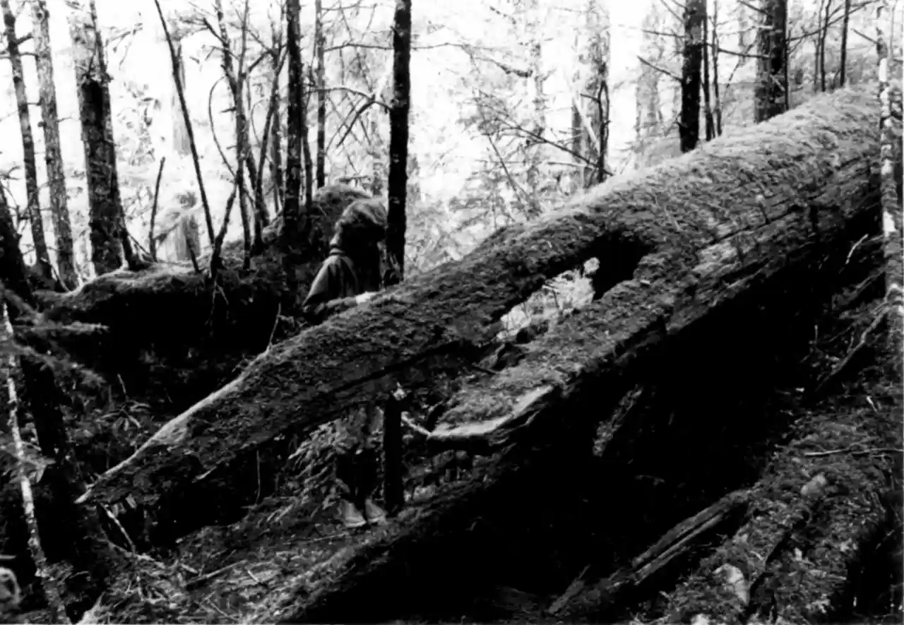 The Etolin Canoe is an unfinished dugout canoe on Etolin Island, in the Tongass National Forest, that is listed on the U.S. National Register of Historic Places. It is made of a single Western red cedar or an Alaska yellow cedar trunk and was started, it is believed, somewhere between 1880 and 1920. Read more on Wikipedia